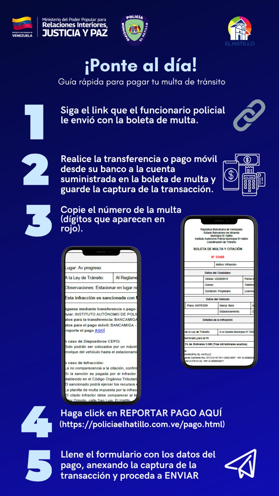 Es importante que suministre al Funcionario un número de teléfono válido con WhatsApp y una dirección de correo para que reciba la boleta de multa.